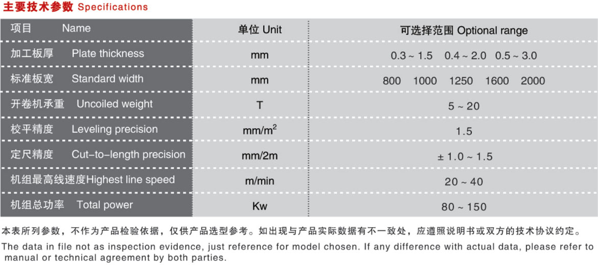 性能特點: 由開卷機、導向糾偏裝置、校平機、定尺裝置、剪板機、電氣控制柜等部分組成。 可根據用戶需要另配上料小車、過度臺、輸送出料及碼垛等選配裝置。